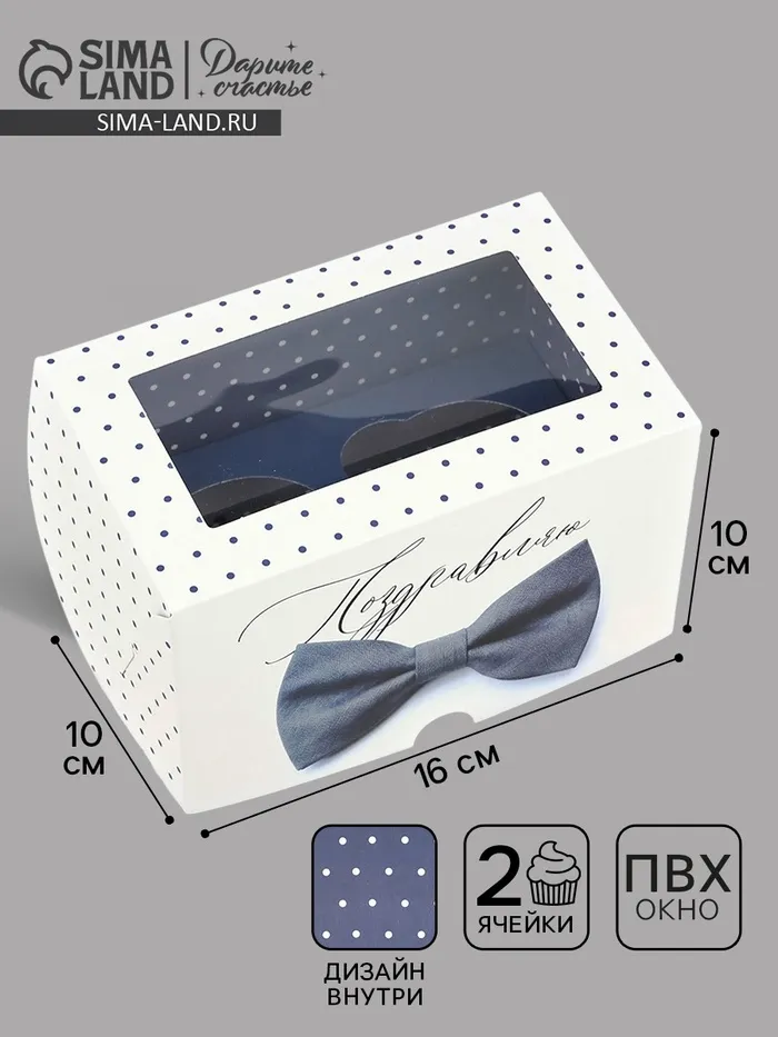 Коробка для капкейков складная с двусторонним нанесением «Поздравляю», 16 х 10 х 10 см — Характеристики