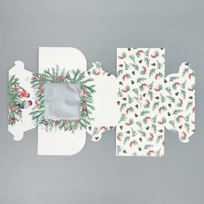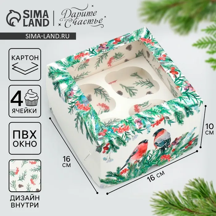Коробка для капкейков складная с двусторонним нанесением «Снегири», 16 х 16 х 10 см — Характеристики