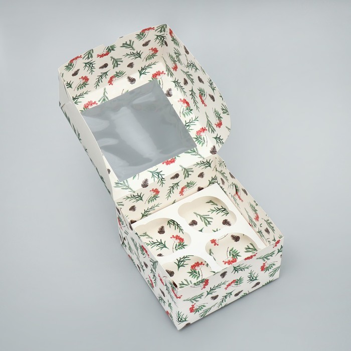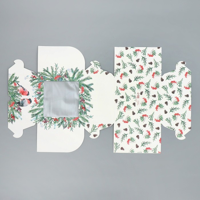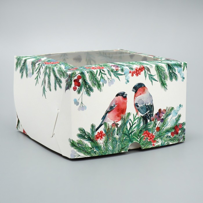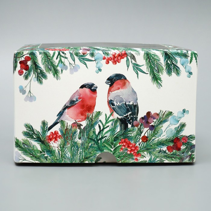 Коробка для капкейков складная с двусторонним нанесением «Снегири», 16 х 16 х 10 см
