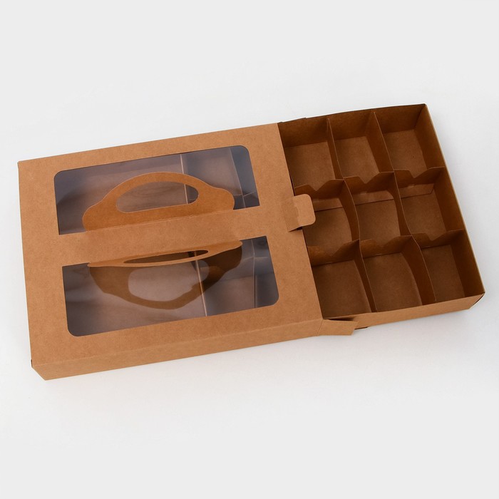 Коробка для кейк-попсов имеет размеры 25 см в длину, 20 см в ширину и 5 см в высоту. Она выполнена из крафт-картона, что придает ей естественный и экологичный вид.
