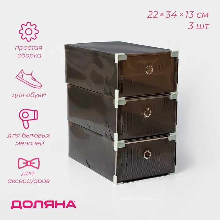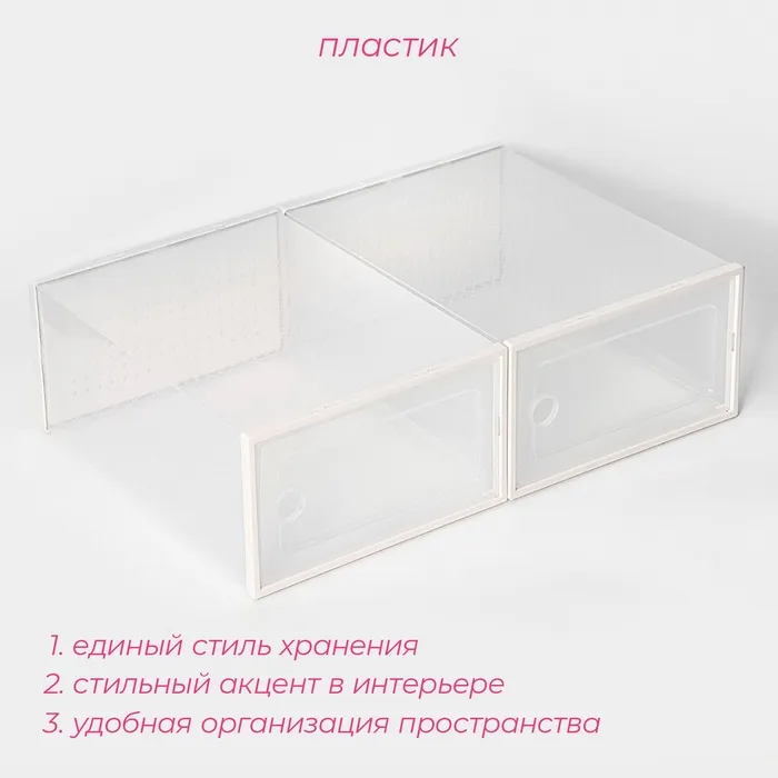 Коробка для хранения обуви с дверцей Доляна Middle size, 24×33×14 см, 2 шт. — Характеристики