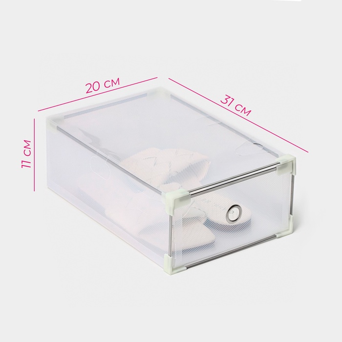 Коробка для хранения обуви выдвижная Доляна Middle size, 20×31×11 см, 3 шт., белая — Характеристики