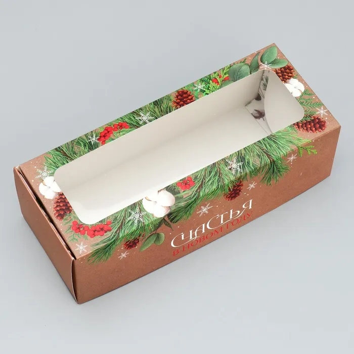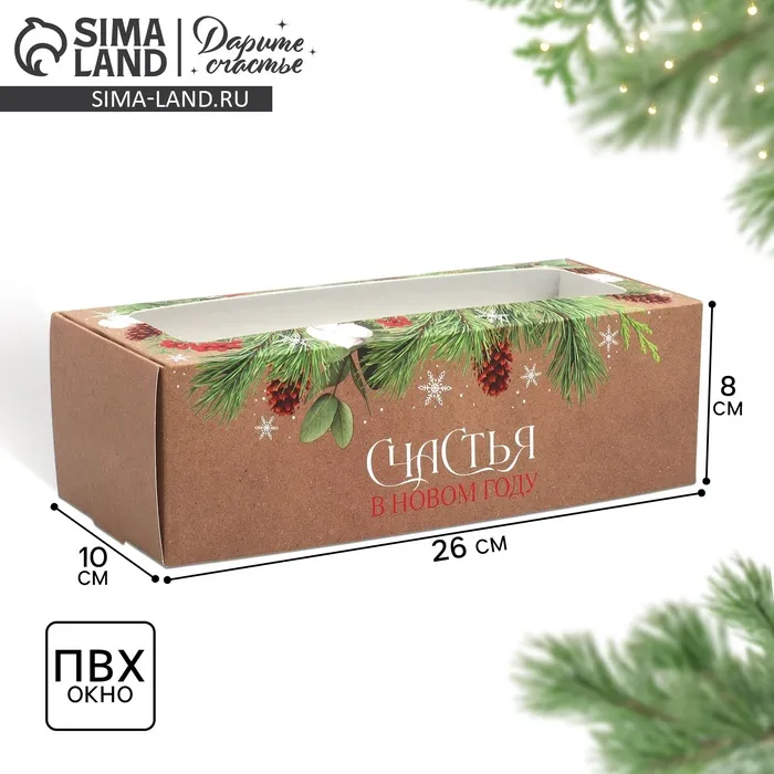 Коробка для кондитерских изделий с окном «Счастья в новом году», 26 х 10 х 8 см — Характеристики