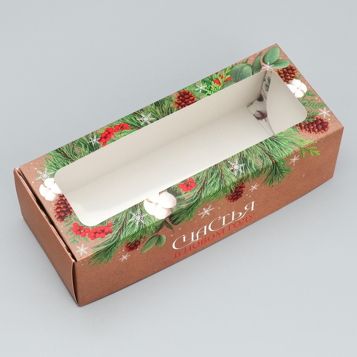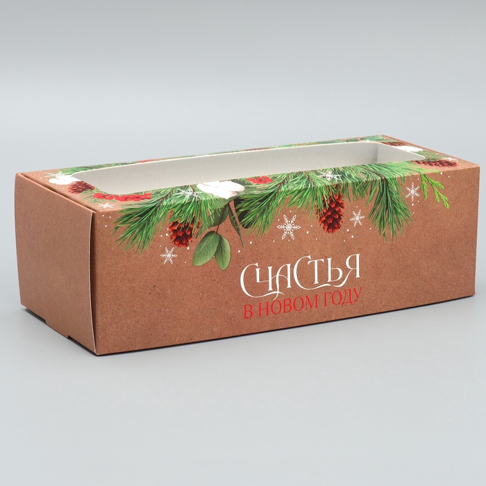 Коробка для кондитерских изделий с окном «Счастья в новом году», 26 х 10 х 8 см