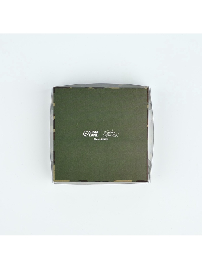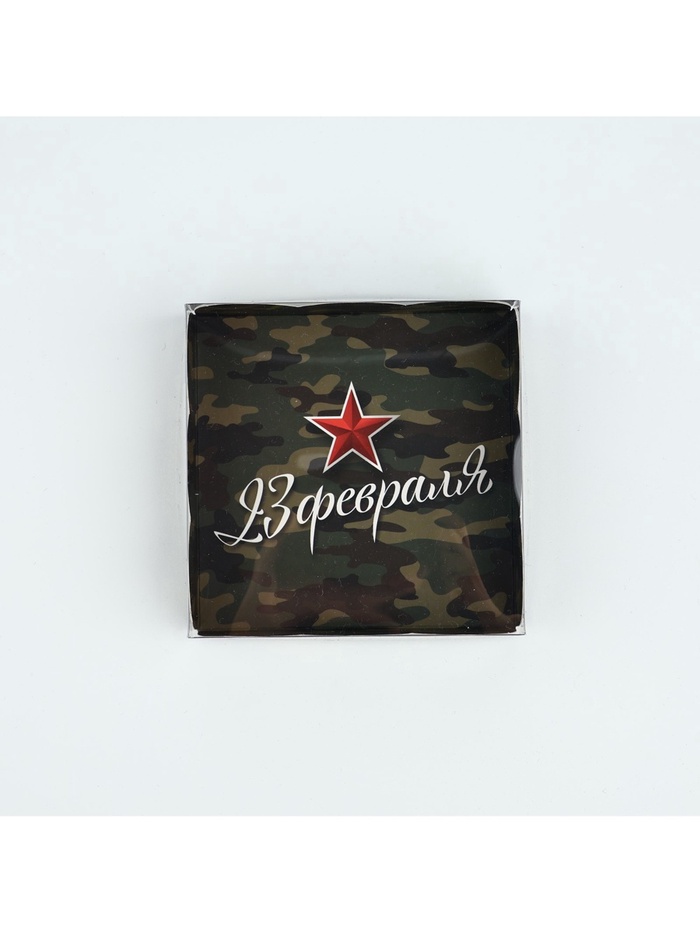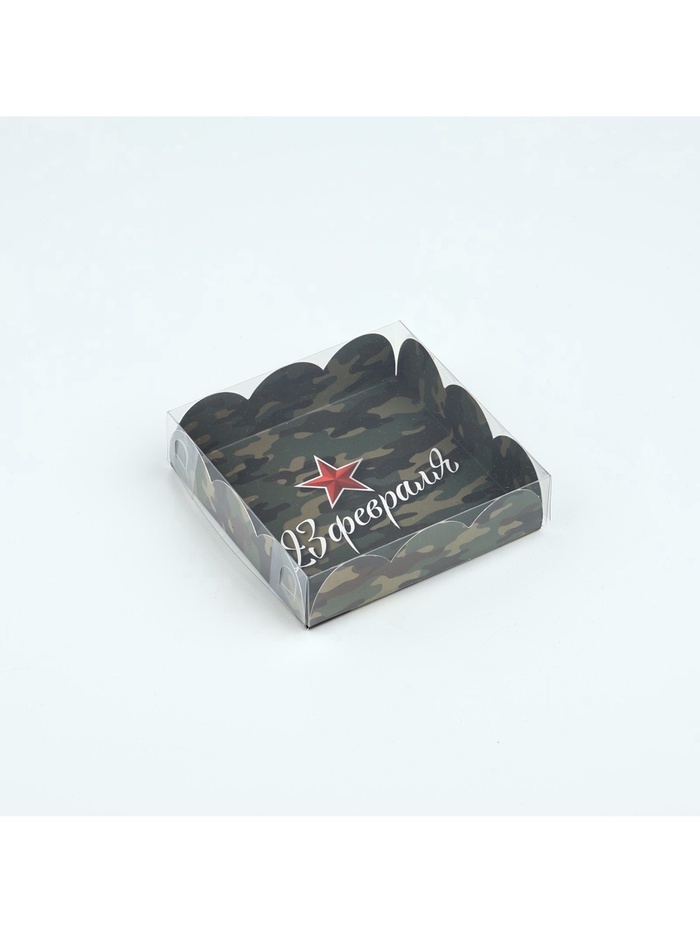 Коробка для кондитерских изделий с пластиковой крышкой «23 Февраля», 10.5 х 10.5 х 3 см