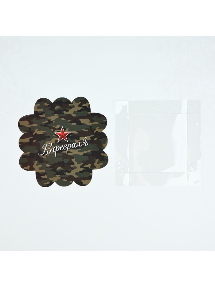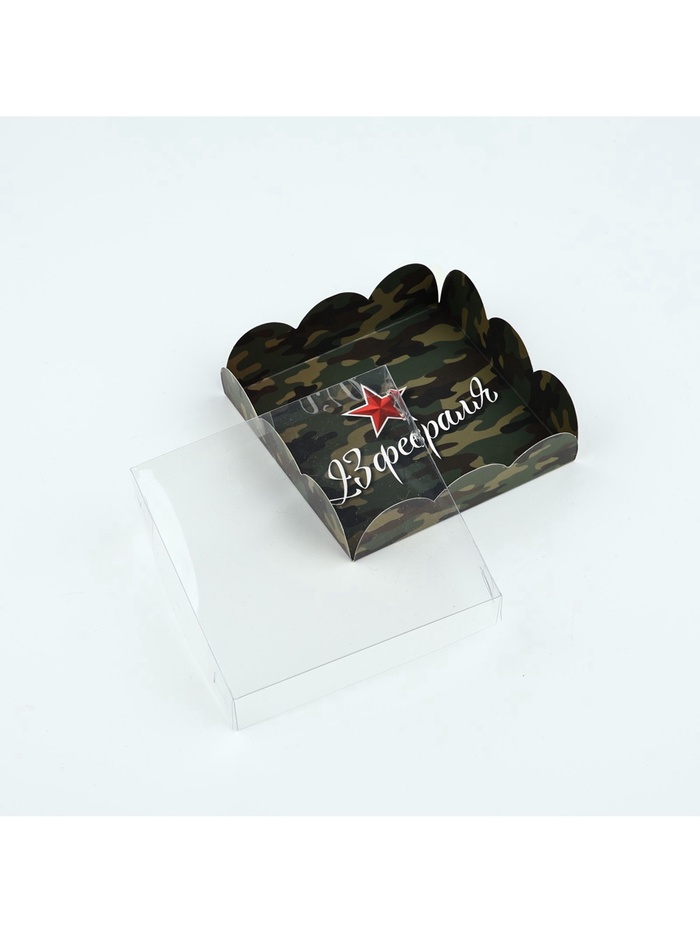 Коробка для кондитерских изделий с пластиковой крышкой «23 Февраля», 10.5 х 10.5 х 3 см — Характеристики