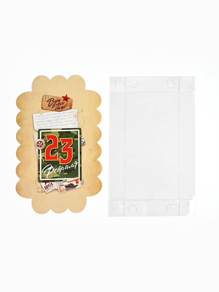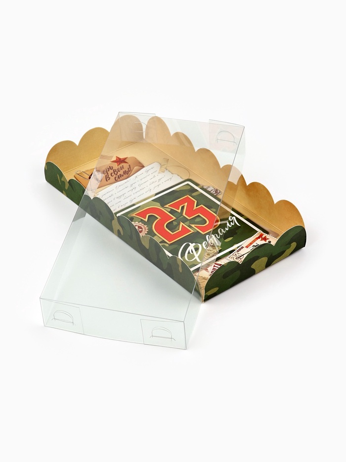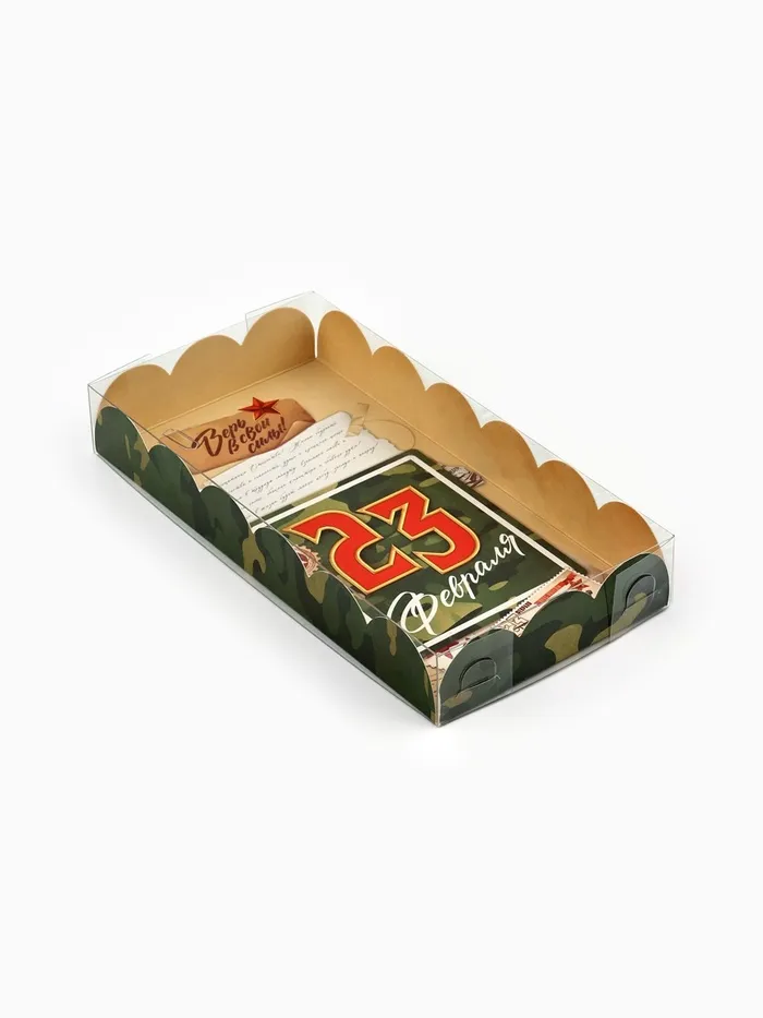 Коробка для кондитерских изделий с пластиковой крышкой «23 Февраля», 10.5 х 21 х 3 см — Характеристики