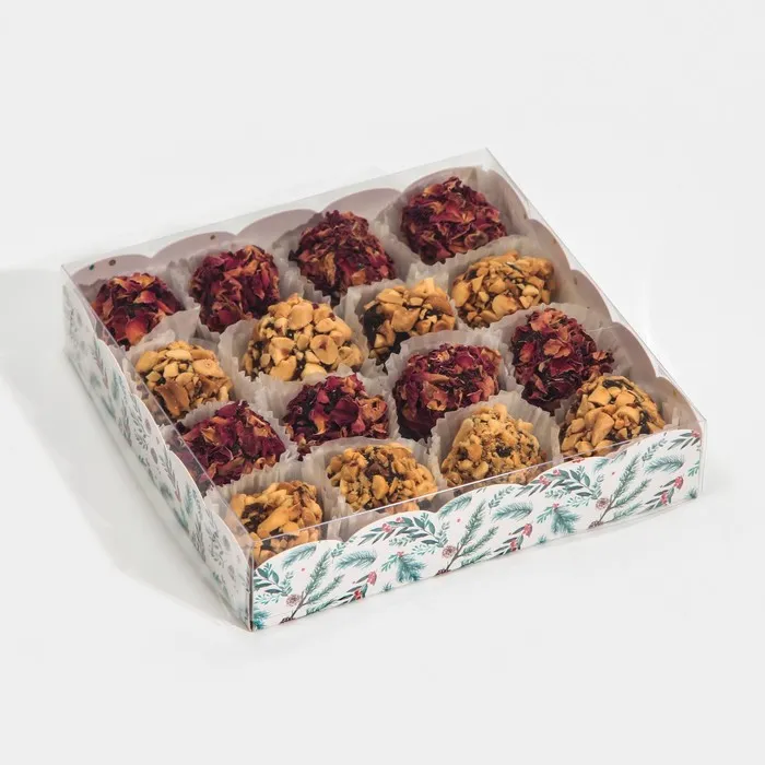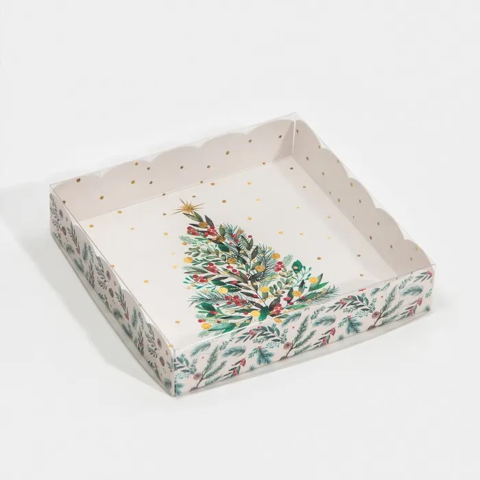 Коробка для кондитерских изделий с пластиковой крышкой «Елка», 15 х 15 х 3 см — Характеристики