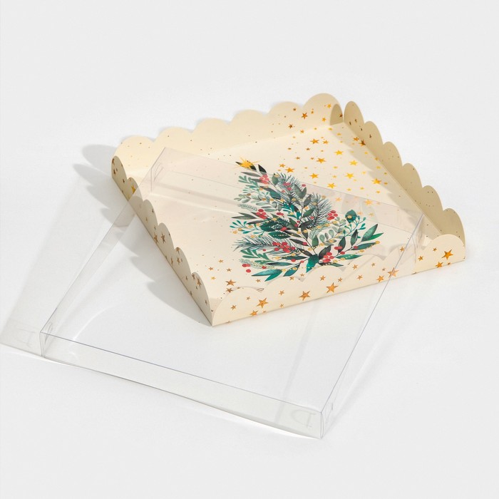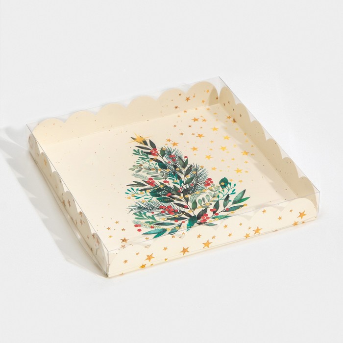 Коробка для кондитерских изделий с пластиковой крышкой «Елка», 21 х 21 х 3 см — Характеристики