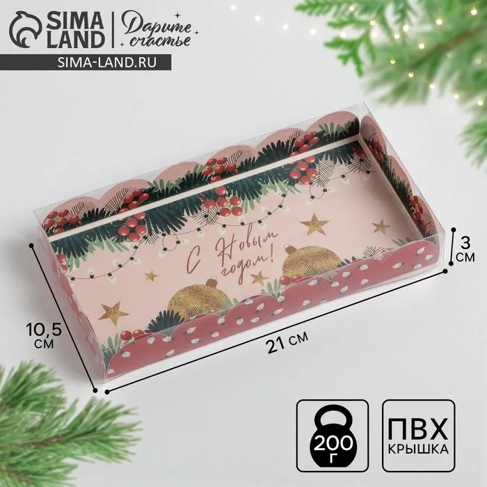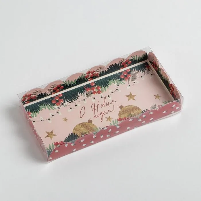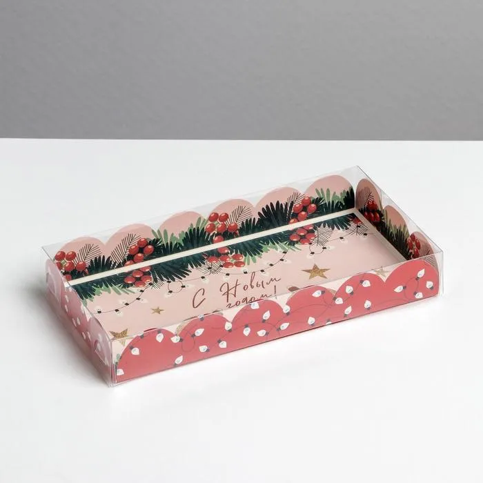 Коробка для кондитерских изделий с пластиковой крышкой «Гирлянды», 10.5 х 21 х 3 см — Характеристики
