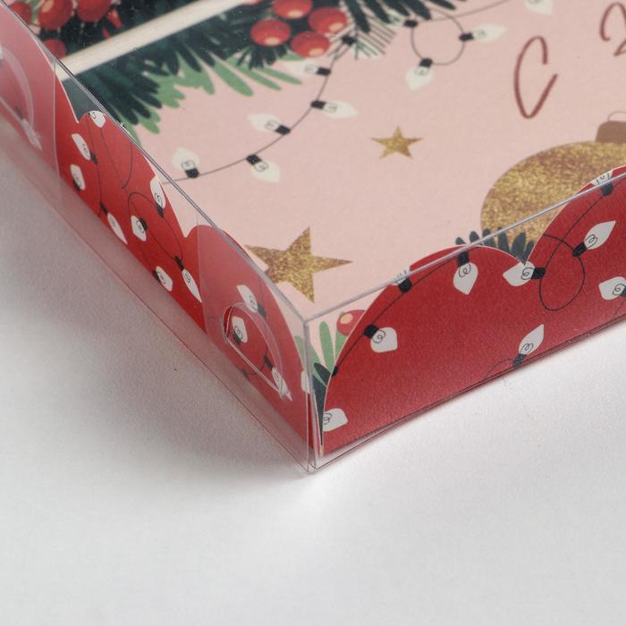 Коробка для кондитерских изделий с пластиковой крышкой «Гирлянды», 10.5 х 21 х 3 см — Характеристики