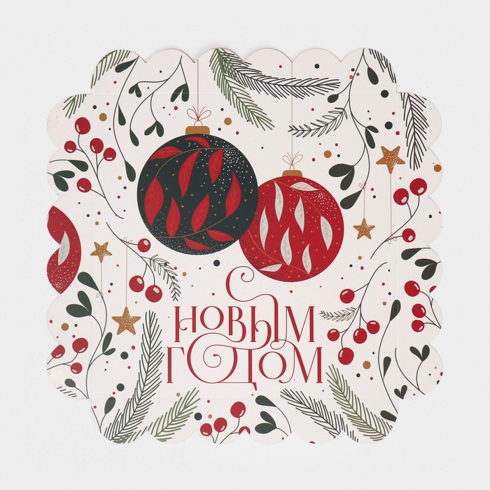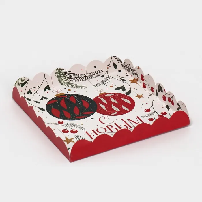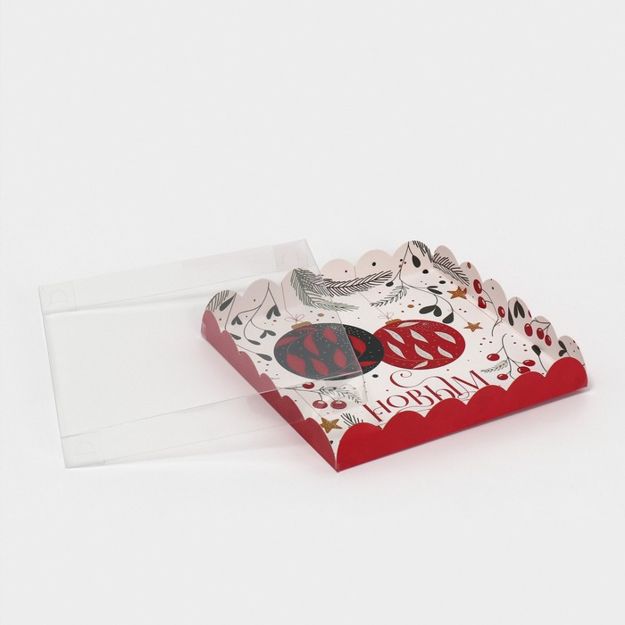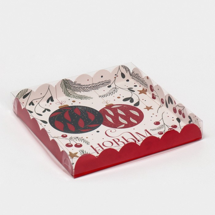 Коробка для кондитерских изделий с пластиковой крышкой «Ёлочные шары», 21 х 21 х 3 см — Характеристики