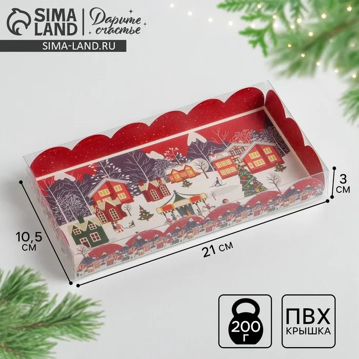 Коробка для кондитерских изделий с пластиковой крышкой «Карусель», 10.5 х 21 х 3 см — Характеристики