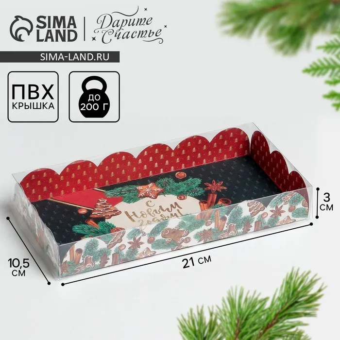 Коробка для кондитерских изделий с пластиковой крышкой «Корица», 10.5 х 21 х 3 см — Характеристики