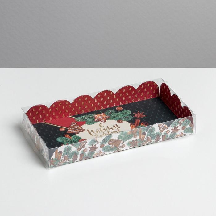 Коробка для кондитерских изделий с пластиковой крышкой «Корица», 10.5 х 21 х 3 см