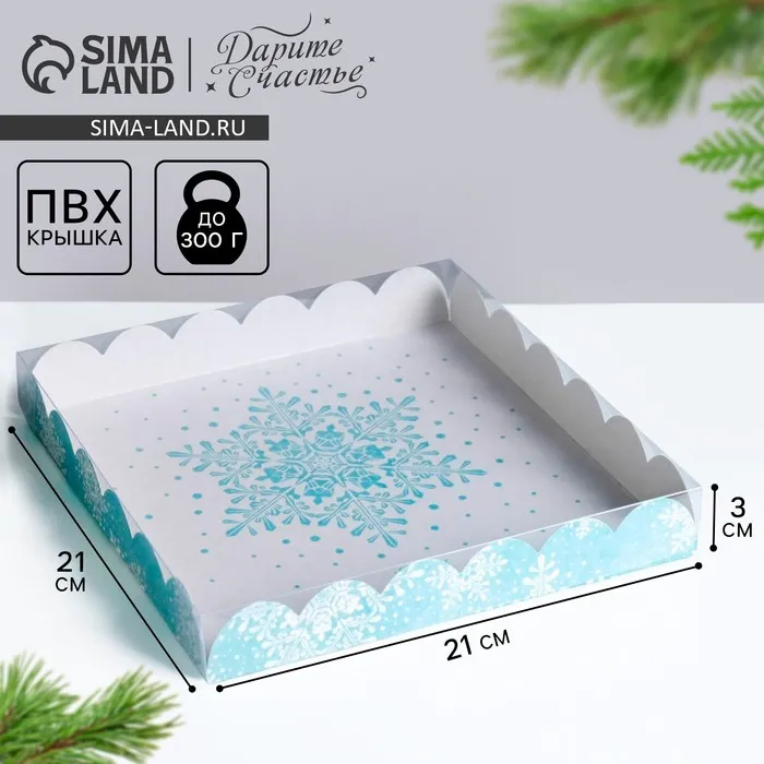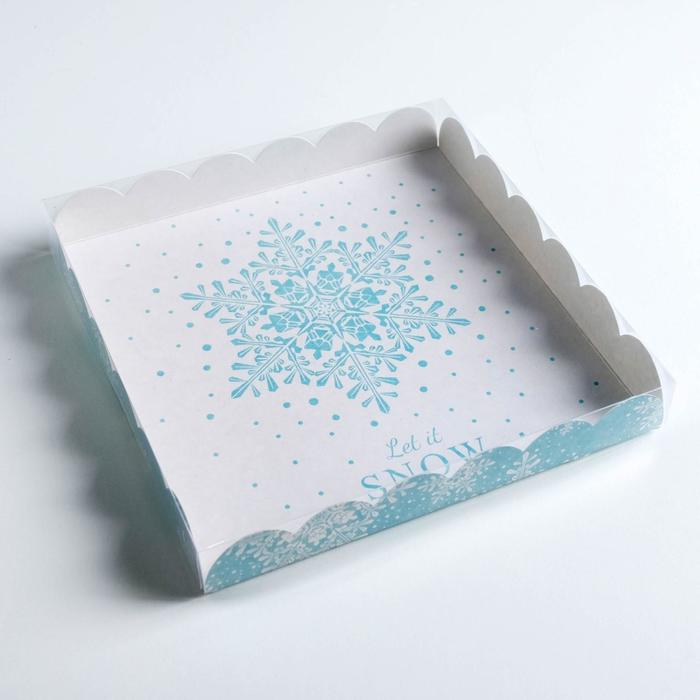 Коробка для кондитерских изделий с пластиковой крышкой «Let it snow», 21 х 21 х 3 см — Характеристики