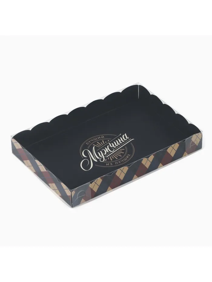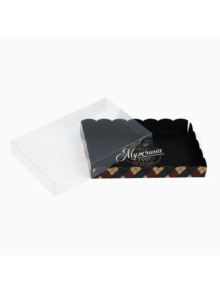Коробка для кондитерских изделий с пластиковой крышкой «Лучший мужчина», 22 х 15 х 3 см — Характеристики