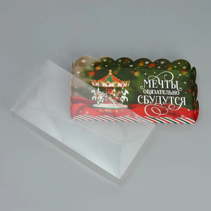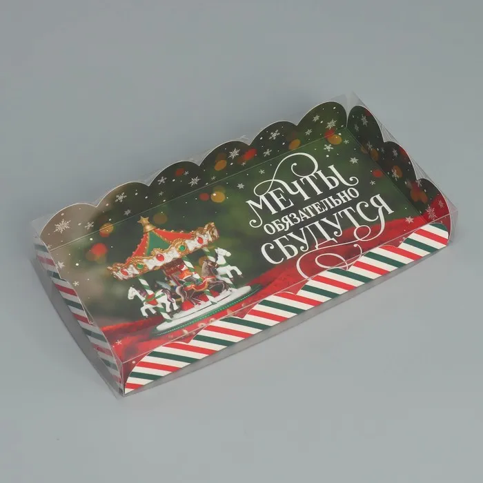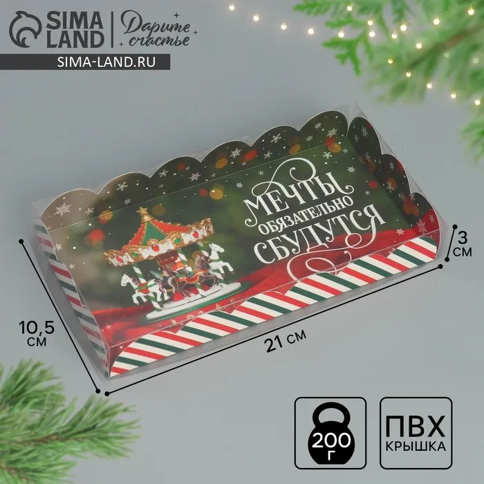 Коробка для кондитерских изделий с пластиковой крышкой «Мечты сбудутся», 10.5 х 21 х 3 см — Характеристики
