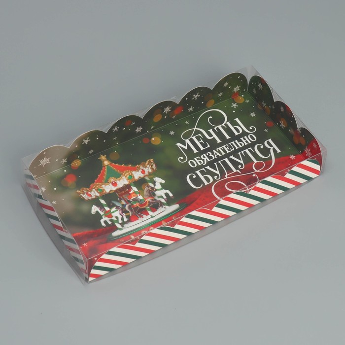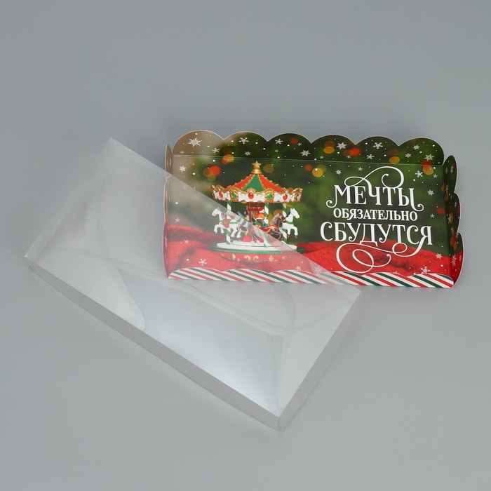 Коробка для кондитерских изделий с пластиковой крышкой «Мечты сбудутся», 10.5 х 21 х 3 см