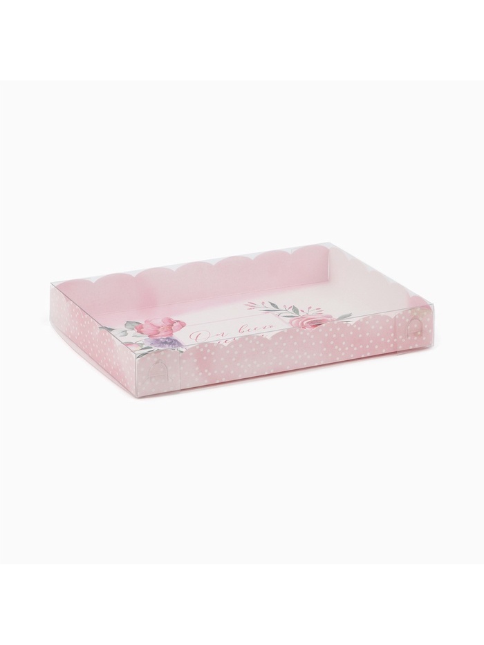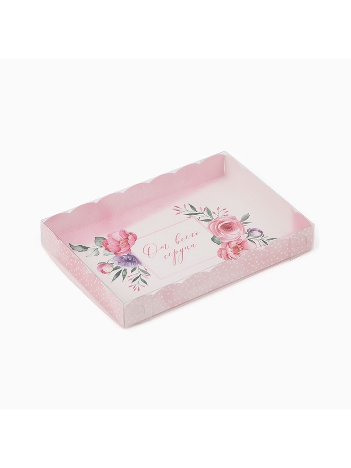 Коробка для кондитерских изделий с пластиковой крышкой «От всего сердца», 22 х 15 х 3 см — Характеристики