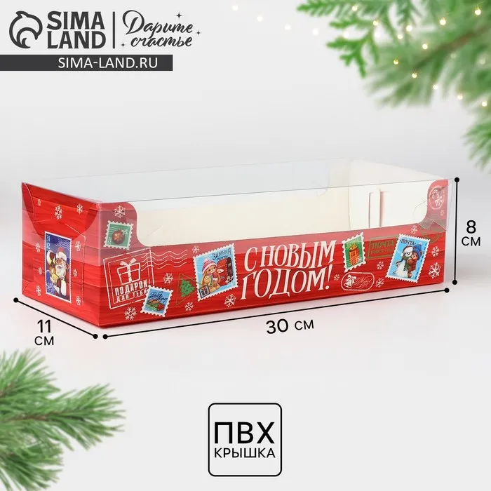 Коробка для кондитерских изделий с пластиковой крышкой «Почта», 30 х 8 х 11 см