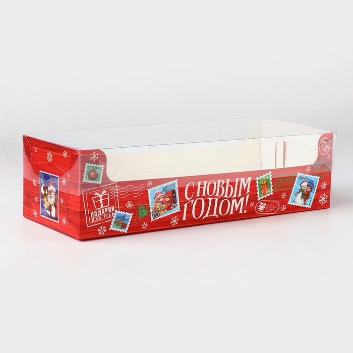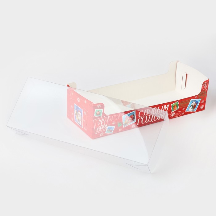 Коробка для кондитерских изделий с пластиковой крышкой «Почта», 30 х 8 х 11 см