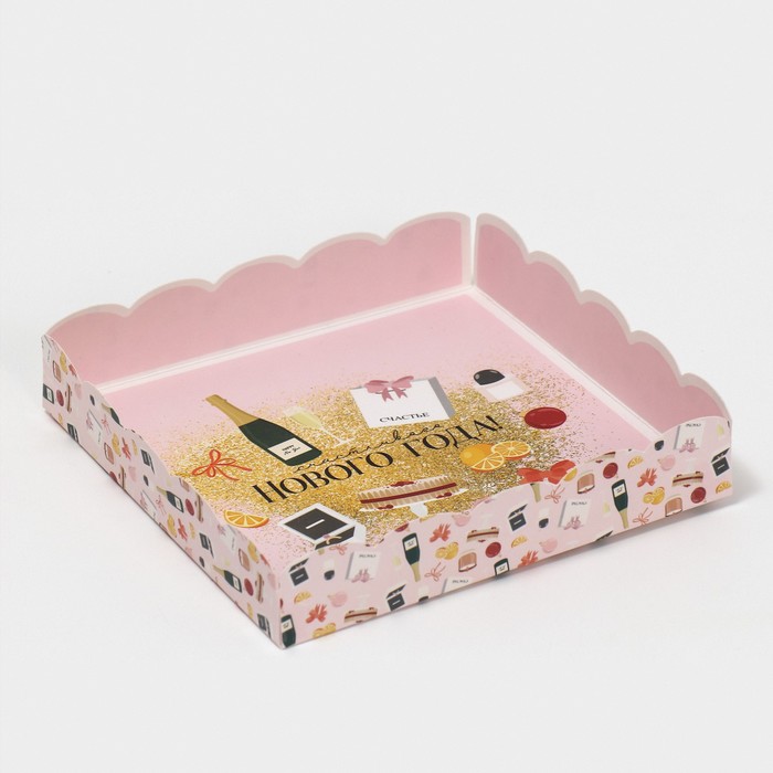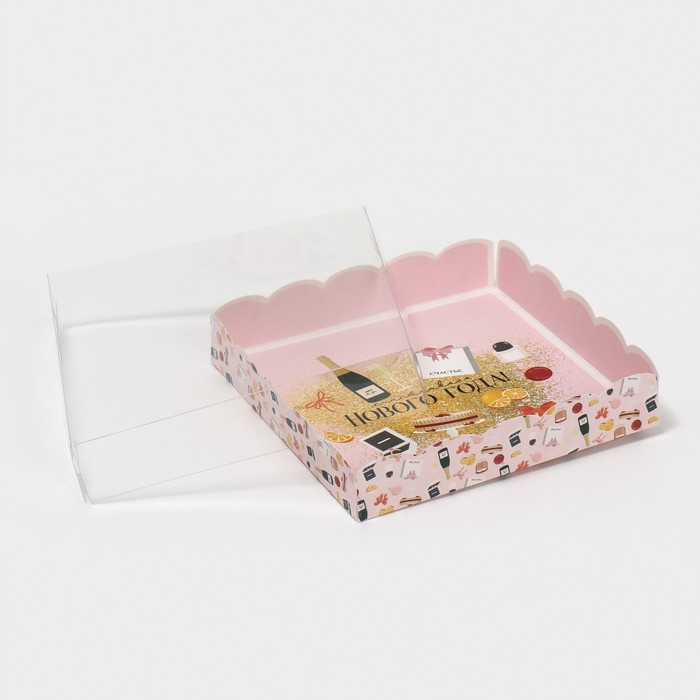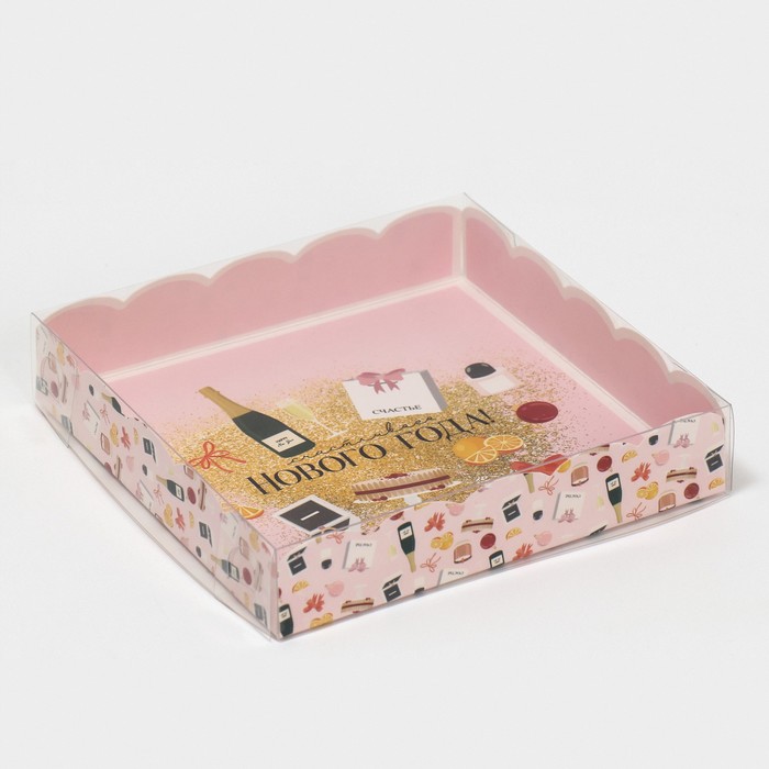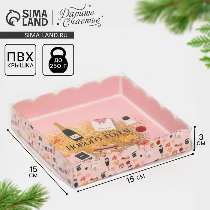 Коробка для кондитерских изделий с пластиковой крышкой «Подарки», 15 х 15 х 3 см — Характеристики