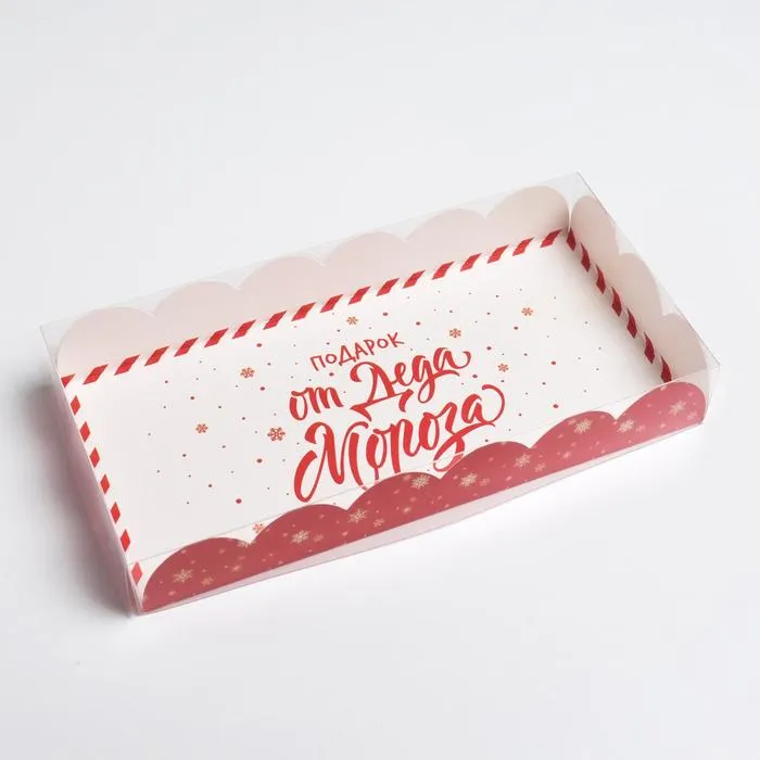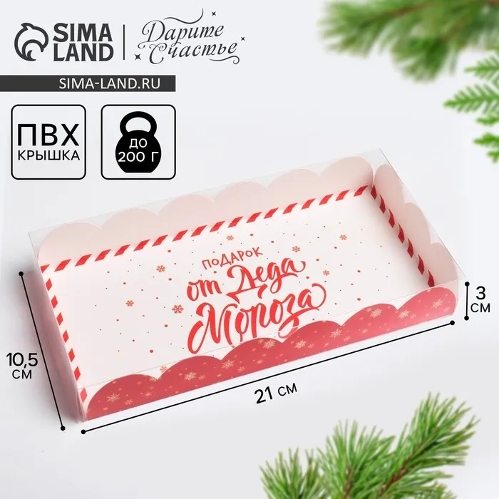 Коробка для кондитерских изделий с пластиковой крышкой «Подарок от Деда Мороза», 10.5 х 21 х 3 см — Характеристики