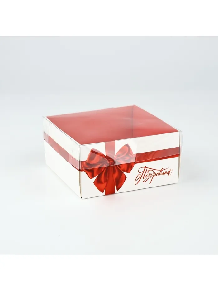 Коробка для кондитерских изделий с пластиковой крышкой «Поздравляю», 12 х 6 х 11.5 см — Характеристики