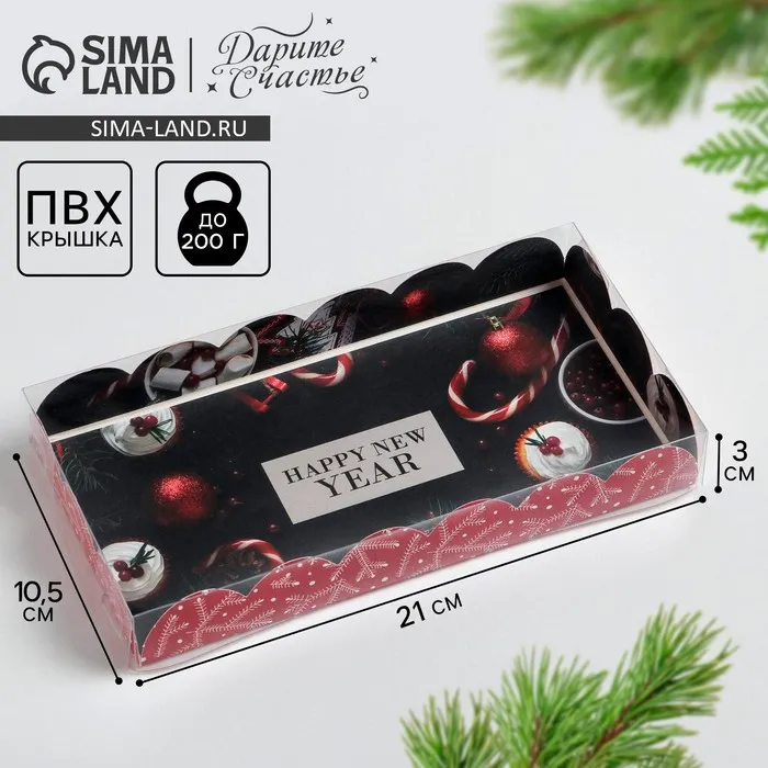 Коробка для кондитерских изделий с пластиковой крышкой «Праздник», 10.5 х 21 х 3 см — Характеристики