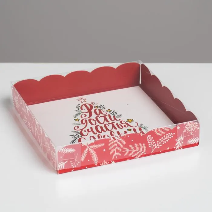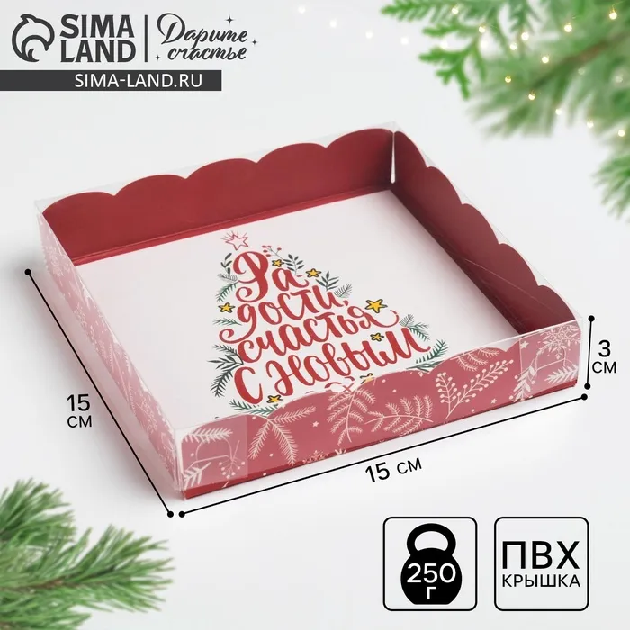 Коробка для кондитерских изделий с пластиковой крышкой «Радости», 15 х 15 х 3 см — Характеристики