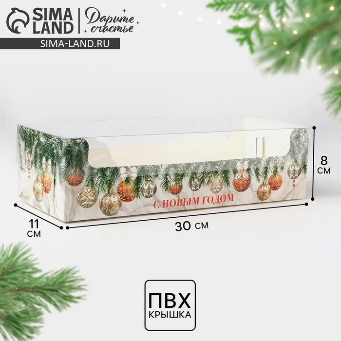 Коробка для кондитерских изделий с пластиковой крышкой «Роскошь», 30 х 8 х 11 см