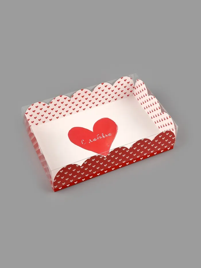 Коробка для кондитерских изделий с пластиковой крышкой «С любовью», 20 х 30 х 8 см — Характеристики