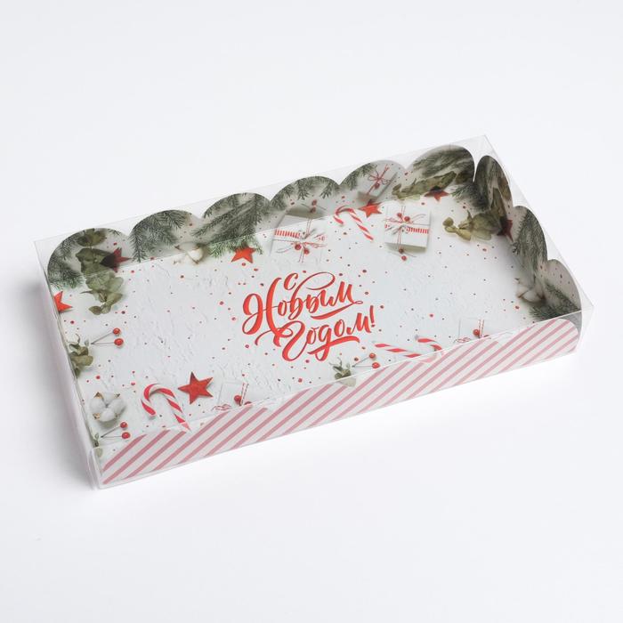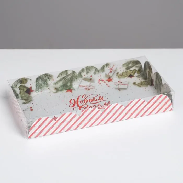 Коробка для кондитерских изделий с пластиковой крышкой «С Новым годом!», 10.5 х 21 х 3 см — Характеристики