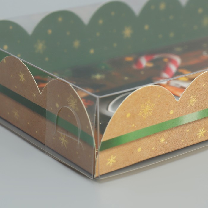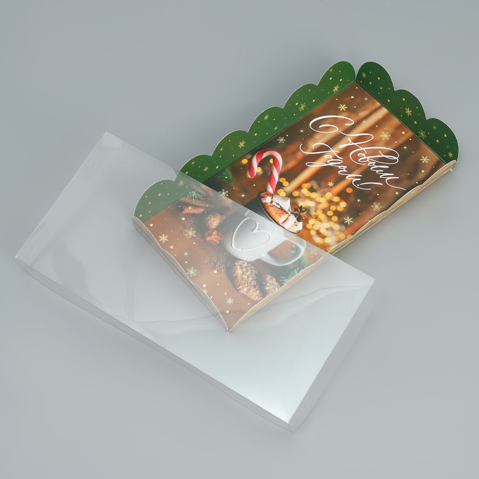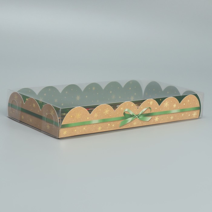 Коробка для кондитерских изделий с пластиковой крышкой «С Новым годом», 10.5×21×3 см