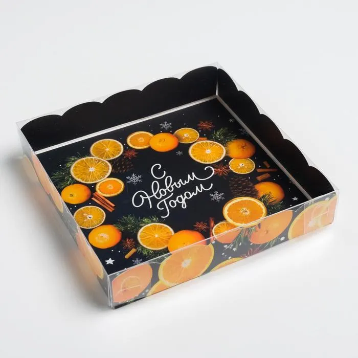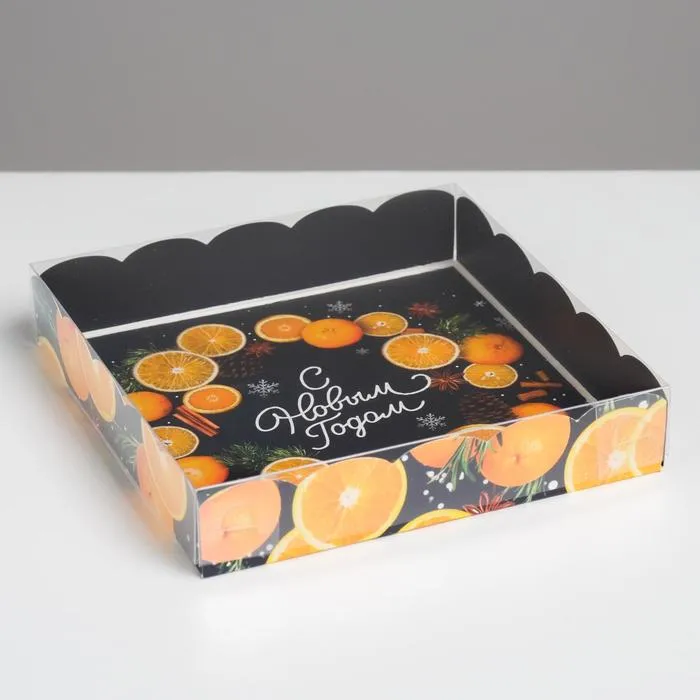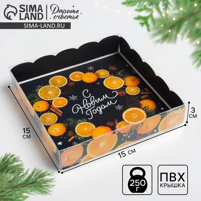 Коробка для кондитерских изделий с пластиковой крышкой «С Новым годом», 15 х 15 х 3 см — Характеристики