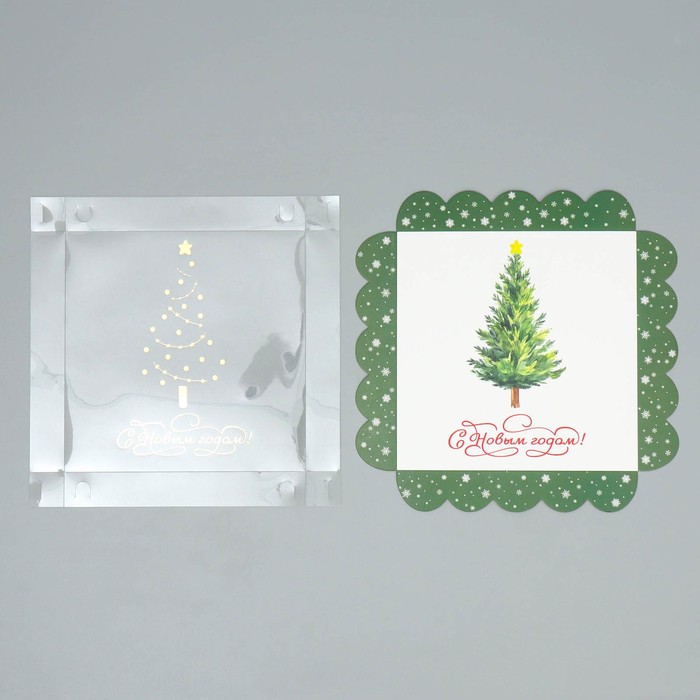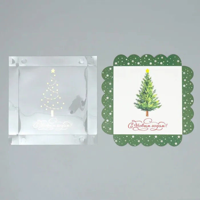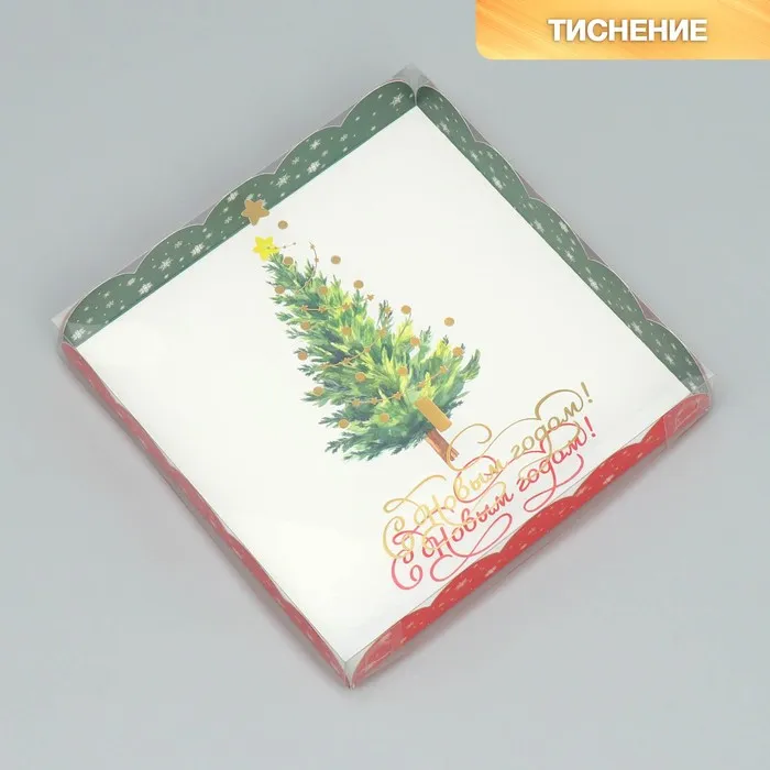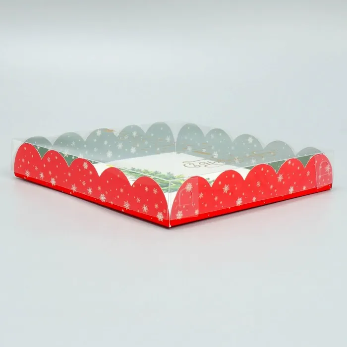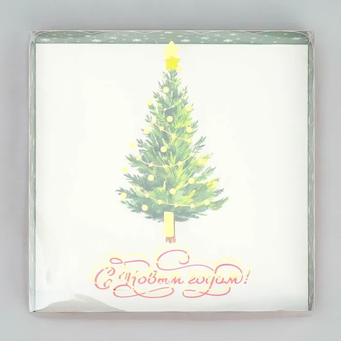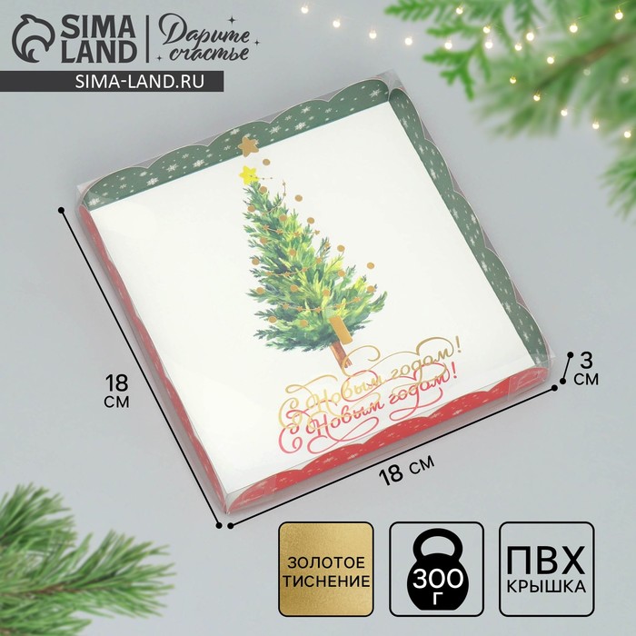 Коробка для кондитерских изделий с пластиковой крышкой «С Новым годом!», 18×3 см — Характеристики