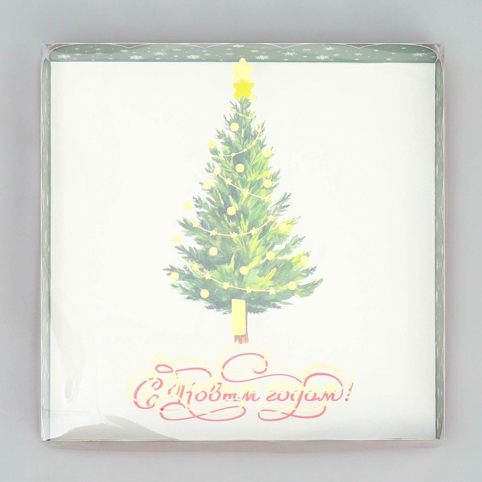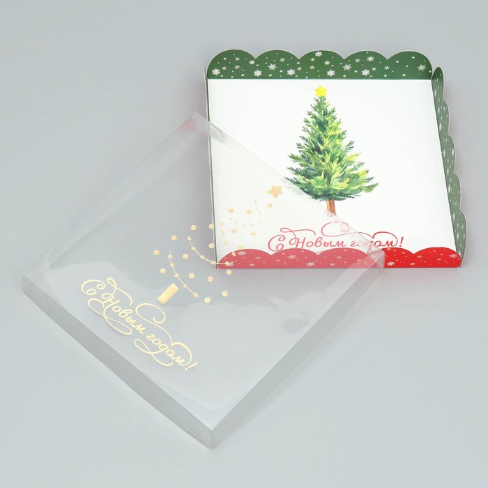 Коробка для кондитерских изделий с пластиковой крышкой «С Новым годом!», 18×3 см