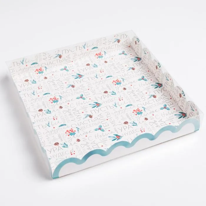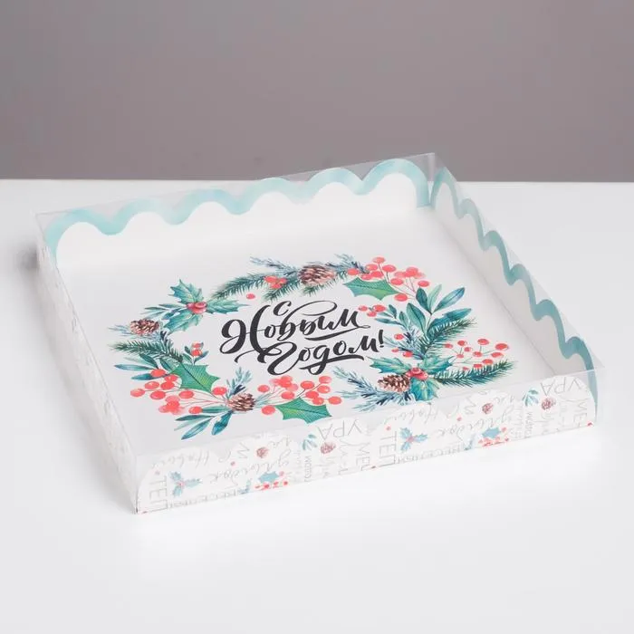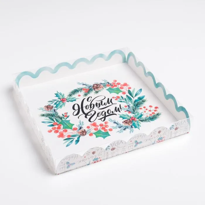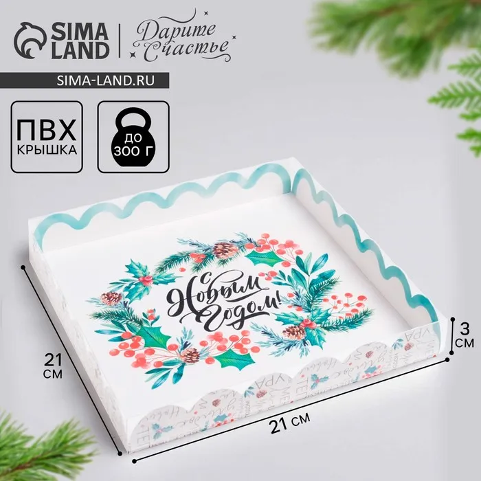 Коробка для кондитерских изделий с пластиковой крышкой «С Новым годом», 21 х 21 х 3 см — Характеристики