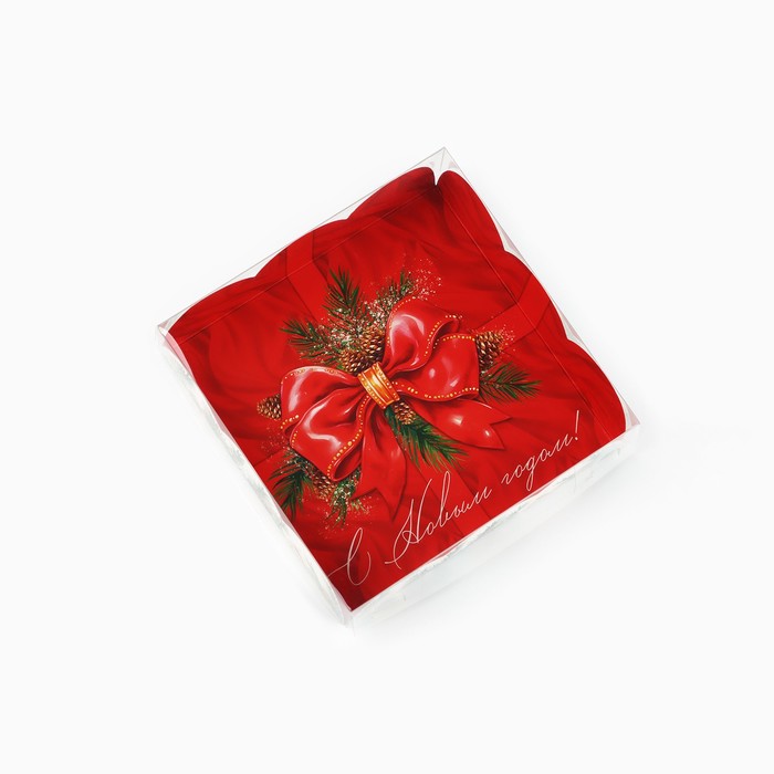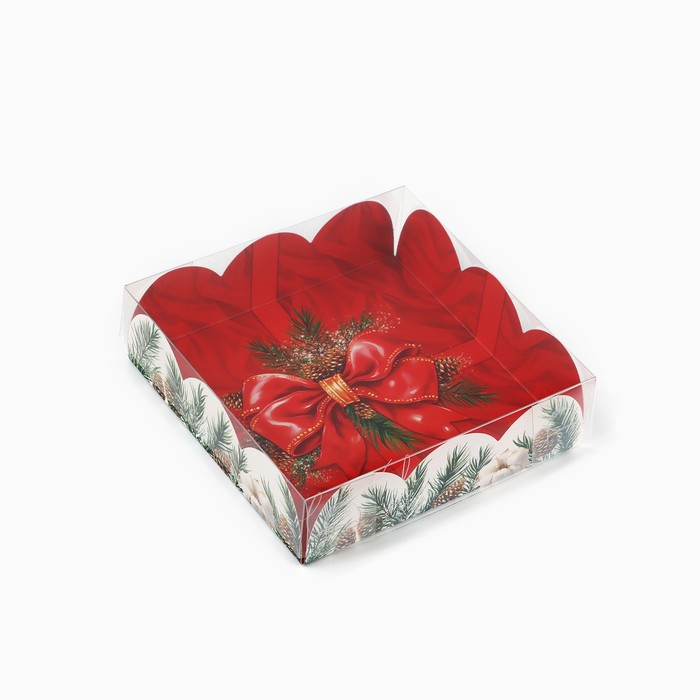 Коробка для кондитерских изделий с пластиковой крышкой «С Новым годом!», бант, 10.5 х 10.5 х 3 см — Характеристики