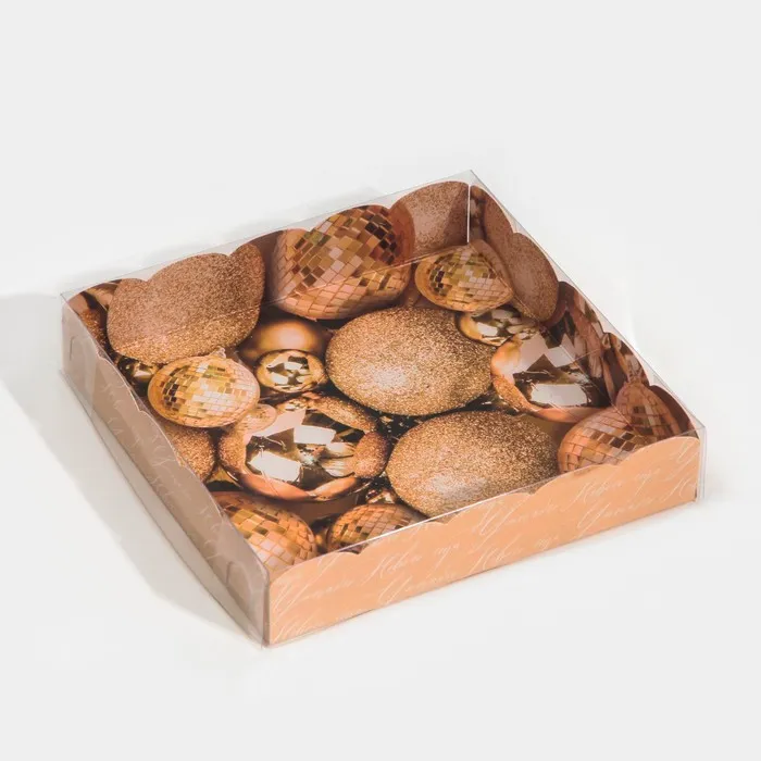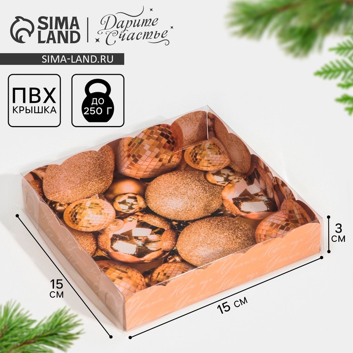 Коробка для кондитерских изделий с пластиковой крышкой «Шары», 15 х 15 х 3 см — Характеристики