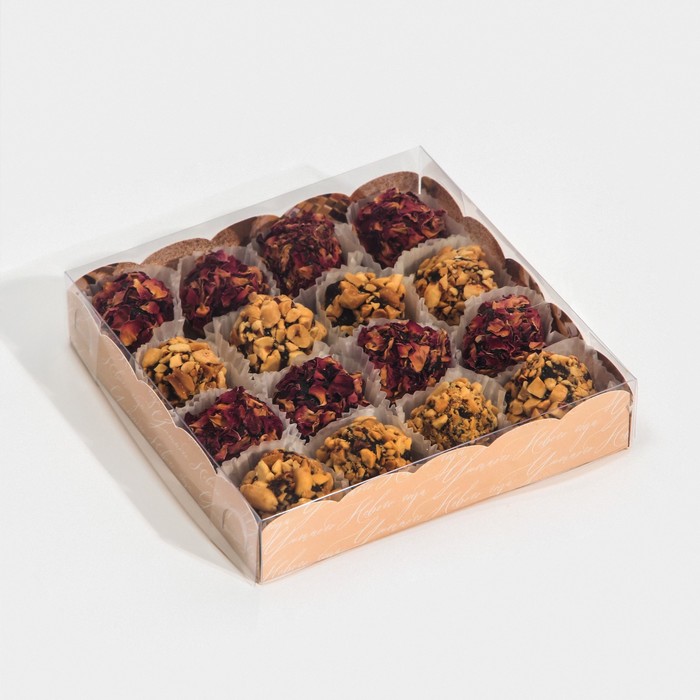 Коробка для кондитерских изделий с пластиковой крышкой «Шары», 15 х 15 х 3 см — Характеристики