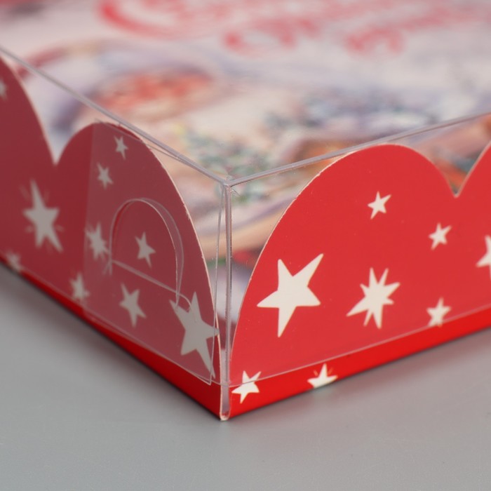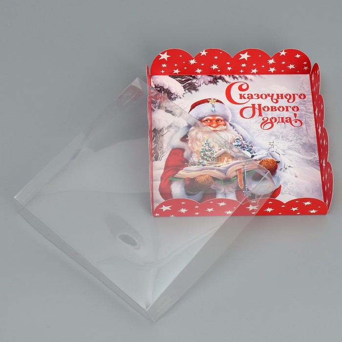 Коробка для кондитерских изделий с пластиковой крышкой «Сказочного Нового года», 13 х 13 х 3 см