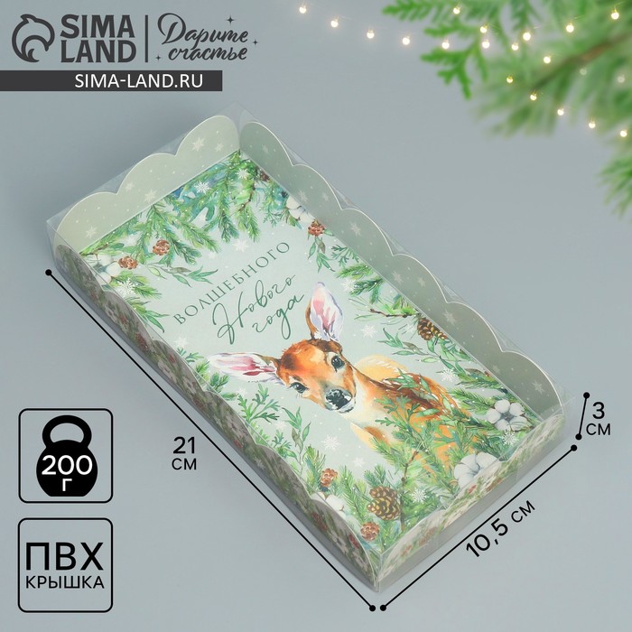 Коробка для кондитерских изделий с пластиковой крышкой «Волшебного Нового года», 10.5 х 21 х 3 см — Характеристики