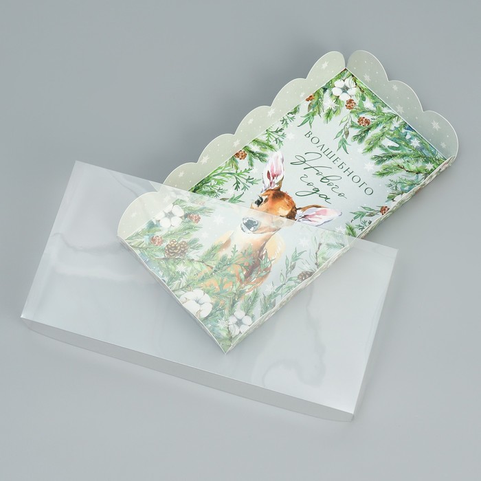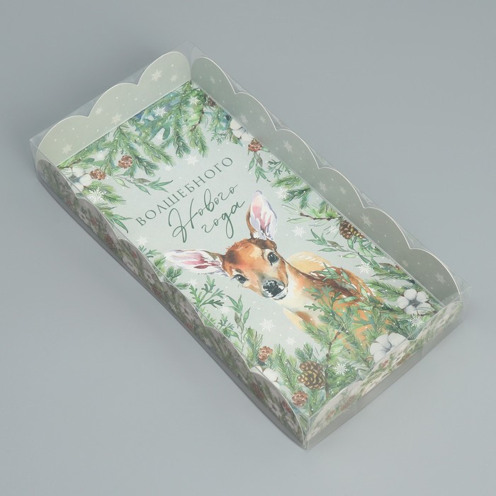 Коробка для кондитерских изделий с пластиковой крышкой «Волшебного Нового года», 10.5 х 21 х 3 см — Характеристики