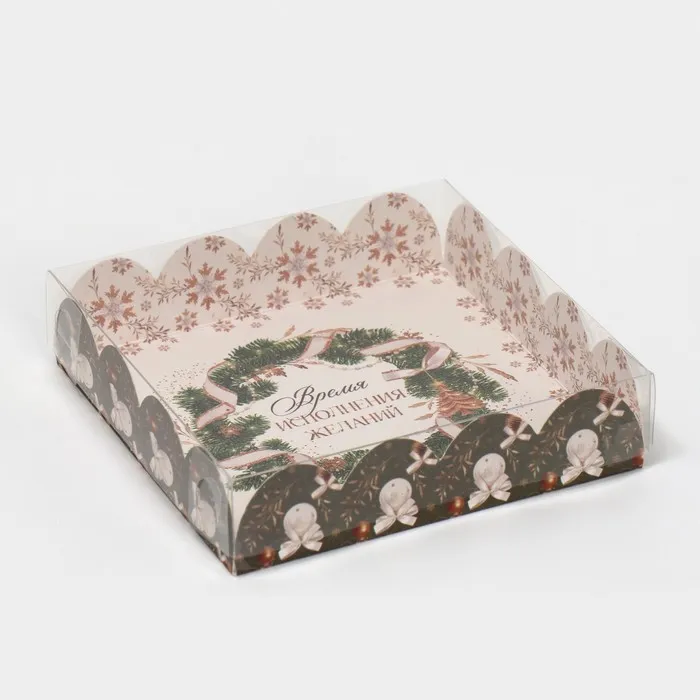 Коробка для кондитерских изделий с пластиковой крышкой «Время исполнения желаний», 13 х 13 х 3 с — Характеристики