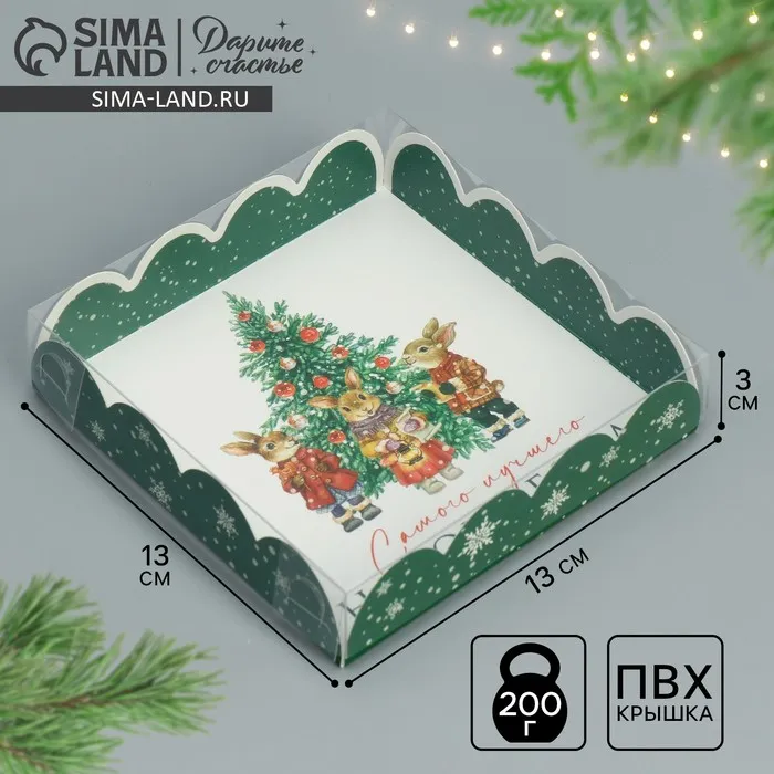 Коробка для кондитерских изделий с пластиковой крышкой «Зайчики», 13 х 13 х 3 см — Характеристики
