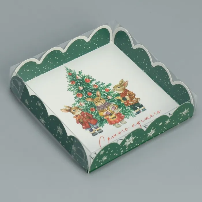 Коробка для кондитерских изделий с пластиковой крышкой «Зайчики», 13 х 13 х 3 см