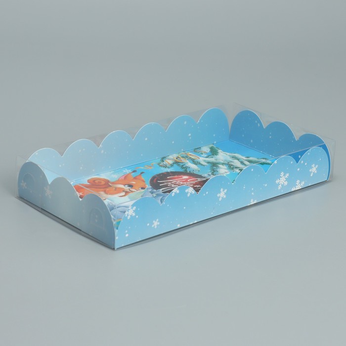 Коробка для кондитерских изделий с пластиковой крышкой «Зайка и белочка», 10.5 х 21 х 3 см