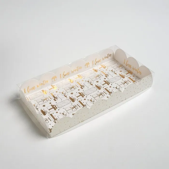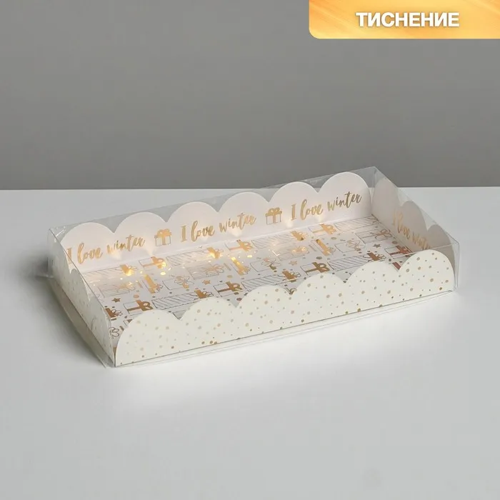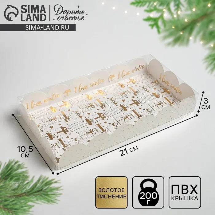 Коробка для кондитерских изделий с PVC крышкой «Снег», 10.5 х 21 х 3 см — Характеристики